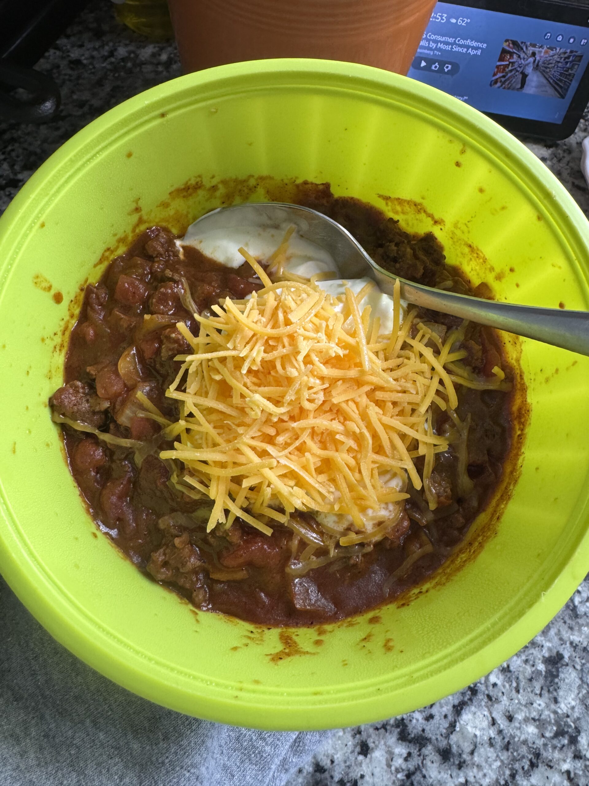 - Cook on low for two hours. Serve with sour cream and cheese.
